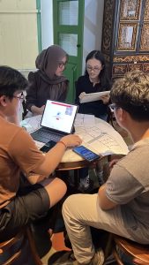 After the presentations, students from both UGM and Curtin University were divided into three groups, each guided by a facilitator from the UGM Master of Architecture program. They worked together to formulate design proposals for the adaptive reuse of Rumah Budaya Ketandan 09, which is currently not fully active. A key point emphasized by the instructor was that heritage buildings must have a commercial function to remain productive and self-sufficient in financing their own operational needs. Accompanied by facilitators, students explored both the interior of the building and the surrounding Kampung Ketandan to understand the context before brainstorming and creating presentations through both digital media and hand-drawn sketches.